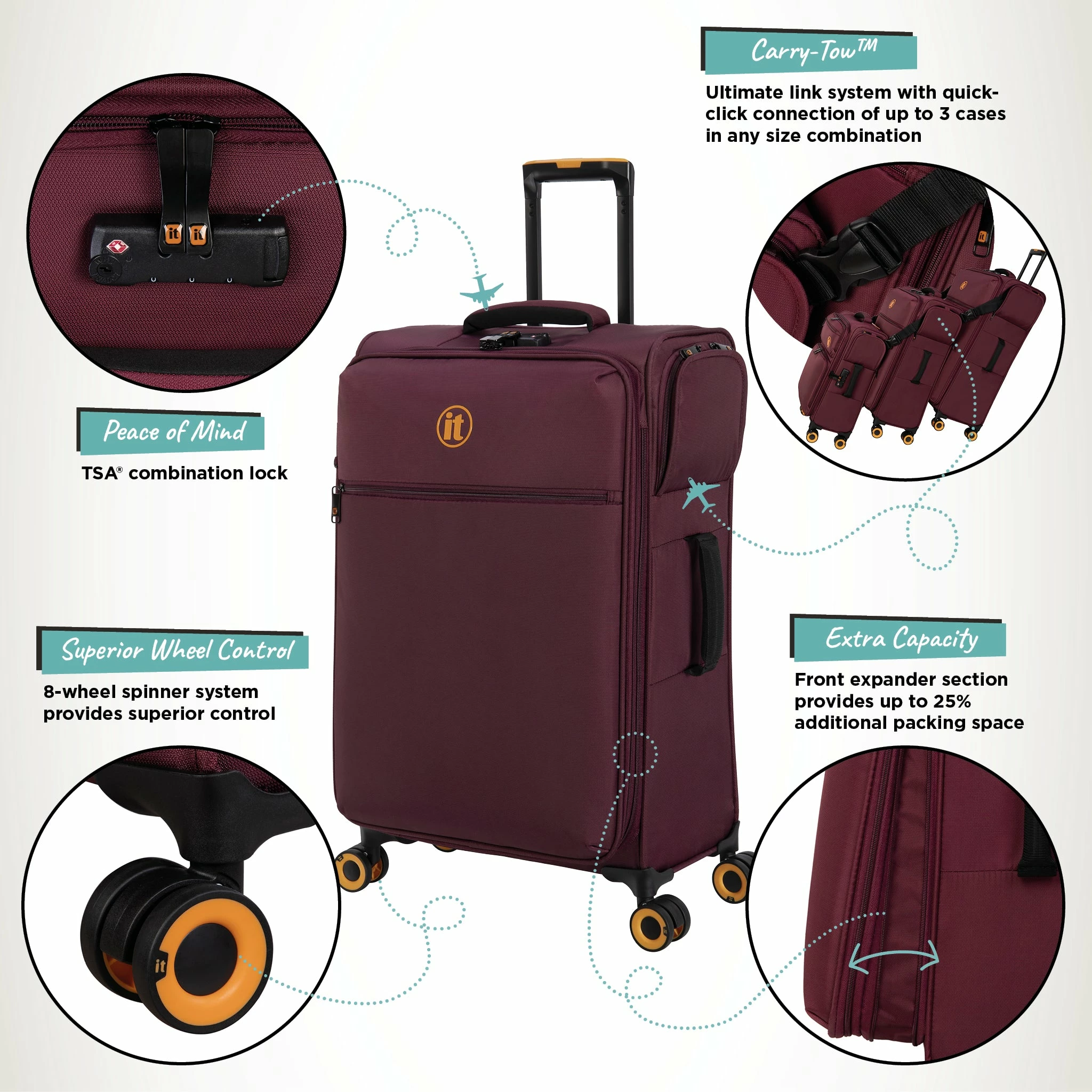 The Carry-Tow link system has been designed with families with young children or babies, business trips, and solo travellers in mind, making travelling through airports, train stations, and around hotels so much easier.